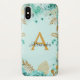 Floral Teal Roses and Gold Foil Monogram Case-Mate iPhone Case