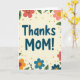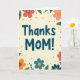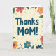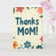 Designed with a soft garden border, this card centers the words “Thanks MOM!” in deep teal on a creamy off-white background. The letters are rounded and friendly, giving the message an affectionate, close-to-the-heart feel ❤️. Around the text, stylized flowers curl into an organic frame, like a gentle hug circling the note. The blossoms mix coral, soft pink, cheerful orange, sky blue, and deep indigo, each with contrasting centers that add little sparks of detail. Simple green leaves weave between the petals, keeping the scene fresh and cozy, with tiny bright orange dots sprinkled throughout like confetti 🌼. The main text sits squarely in the middle, while the floral elements stay near the edges so the message stays easy to read. The border shows slightly uneven petal shapes and scattered orange specks against the pale background.
