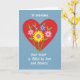 This card features a large red heart at the center, holding a cheerful bouquet that feels like a warm hug ❤️. A big yellow flower with a pink center anchors the arrangement, surrounded by pink blossoms with white-edged petals and small orange centers that seem to lean in close like old friends. Smaller blue and purple flowers fill the gaps, tied together with simple green stems and leaves that curl gently upward. The background is a soft pale blue, giving the bright reds, yellows, and pinks plenty of room to stand out. Near the top, white text reads “To Grandma.” in a flowing style, sitting neatly above the heart. Along the bottom, more white text says “Your heart is filled by love and Beauty.”, stretching across the lower area like a quiet note beneath the flowers 🌼. The heart is solid red with smooth edges, and the flowers sit clustered inside it with green leaves peeking out around the petals.