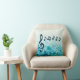 Pillow featuring a treble clef and music notes on a blue floral background.