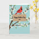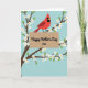 Designed with a striking red bird at the center, the illustration shows it perched on a pale brown ribbon as if pausing to deliver a loving note ❤️. The bird has a pointed crest, black face markings, and a bright orange beak that stands out against a light blue sky background. Across the ribbon, the main text reads “Happy Mother’s Day” in dark lettering, with “Omi” placed just below in a smaller size. Dark brown branches curl around the scene like a gentle embrace, guiding your eye back toward the bird. Small white blossoms with soft yellow centers and a few fresh green leaves dot the branches, adding a springtime feel 🌼. The simple shapes and smooth color areas keep the focus on the tender, attentive posture of the bird and the caring message it carries. The light blue background stays open and airy, while the blossoms cluster most densely near the upper corners and along the sides of the branches. Share Mother’s Day sentiments with someone special, and let the pale brown ribbon sit horizontally beneath the bird with the dark text centered across it.