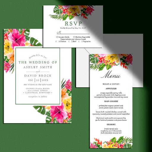 Tropical Hibiscus Floral Palm Leaves WeddingDesigned by Sonya Bernhart