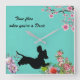 Floral Turquoise Dachshund Silhouette Wall Clock