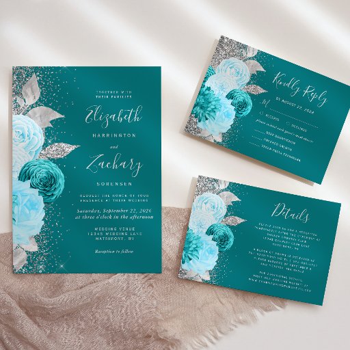 You can apply the design of your Floral Turquoise Silver Glitter Arch Wedding Invitation to other items for a party such as stickers. The same goes for all of our digital products - any digital product/ design you purchase can also be used on any Zazzle product.