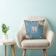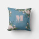 Pretty pink rose floral pillow with a typography design and elegant cute, calligraphy, simple monogram, with a pink and blue, vintage, rose, personalized with name and monogram initial
