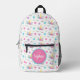 A cute personalized unicorn girl backpack. Design features a floral unicorn face pattern that you can personalize with a name for a custom backpack just for her.