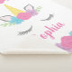 This cute unicorn Sherpa blanket makes a wonderful gift for a girl. Design features a unicorn face and flowers in purple, pink and teal.