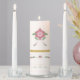 Elevate your wedding ceremony with this stunning Floral Unity Candle Set. Featuring an elegant rose pink and gold botanical design, this beautiful candle set adds a romantic and timeless touch to your special day.