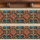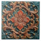 Floral Victorian Teal Orange Leaf Patterns Ceramic Tile