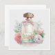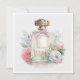 Design features a beautiful watercolor illustration of a floral vintage perfume bottle, set off with pink and blue flowers. Reverse side is blank.