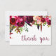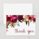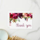 This timeless, romantic design features a burgundy watercolor floral hanging with feather and botanical accents. The writing on the card says "thank you" in a burgundy/purple color.