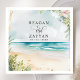 Enhance your beach wedding with these elegant napkins featuring a serene watercolor beach scene. Perfect for adding a touch of coastal charm, these napkins include customizable text for the couple's names and wedding date. The high-quality print ensures vibrant colors and intricate details, making your special day even more memorable.