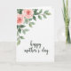 Designed with a gentle watercolor look, this card features a cluster of blush pink blossoms in the upper left that stretches across the top edge like a soft floral canopy. The petals show subtle shading from pale pink to slightly deeper tones, and the leaves mix sage, olive, and deeper greens on thin brown stems. The wide white background below feels airy, giving the flowers room to breathe and setting a calm scene that hints at a tender, affectionate connection ❤️. Near the lower center, a short Mother’s Day message sits neatly in dark ink, standing out clearly against the light space. The lettering has a flowing, hand-drawn style that feels intimate, like a note shared between close family or friends. The watercolor edges stay soft and slightly translucent, keeping everything gentle and relaxed 🌼. The floral border remains concentrated along the top and upper-left, with the rest of the card left bright white and uncluttered.