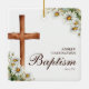 Floral Watercolor Cross Baptism Ceramic Ornament