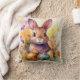 Floral Watercolor Cute Easter Bunny Throw Pillow