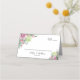 Elegant Palm Floral Watercolor Tropical Wedding Place Card Or Seating Card. With pink and green botanical accents and purple lettering. A tropical design that embraces the tranquil beauty of nature mixed with a playful edge that is sure to help you have fun. A blend of calming green tropical leaves, including banana leaves, palms, monstera leaves, and pink princessa plants, alongside soothing purple-pink orchid flowers, intertwined with various other foliage. Enhanced by a modern handwritten or script typography font, this enchanting print radiates charm and sophistication. This versatile design brings a sense of tropical paradise to any setting or special occasion, making it perfect for a destination wedding, bridal shower, or just when you want to add a tropical flare.