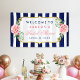 Floral Wedding Bridal Shower Navy Blue Stripes Banner