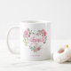 Soft pink watercolor flowers form a delicate wreath around the word “Bridesmaid,” creating a light and romantic look for bridal party gifts. Personalize the mug with a name to make each one special for the wedding celebration or bachelorette party.