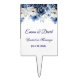This wedding cake topper is shown with a lovely blue floral mix watercolor print with bride and groom personalized names and wedding date.