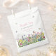 Bohemian, modern and simply perfect for summer, this wedding favor bag features brightly colored delicate wildflowers with butterflies, bumble bees and ladybugs.