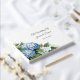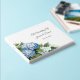 This wedding guest book is shown in lovely hydrangeas print; text is shown in a slate gray color.