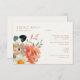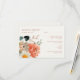 This gorgeous wedding RSVP response card features a lovely creamy ivory background and text in rich dark ochre. Text include reply by date, 3 menu choices and optional song request. A joyful display of floral blooms at the front of the card adds a youthful elegance and style to your wedding stationary. The back includes couple initials.