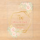 A modern acrylic wedding card with delicate blush roses, lush greenery, and elegant golden geometric accents. The transparent acrylic design creates a unique and stylish way to announce your special day, perfect for couples who love romantic and timeless wedding details.