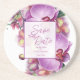 Orchids provide an ornamental backdrop for this save the date coaster. Great for warm weather events, weddings, anniversaries, outdoors, indoors. Use to complement floral wedding event themes, including tropical themes. Use the template to personalize.