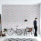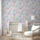 A colorful and cute wallpaper with soft pink, blue, green and purple flowers and greenery. Create a soft color palette for a nursery or toddler room. All in pastel hues perfect for girls room with a whimsical boho design.