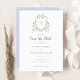 Floral White Dusty Blue Crest Save the Date Wedding Invitation. Traditional Wedding Invitation. White Flowers Greenery Wedding Monogram Crest Save the Date Card