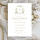 Floral White Hydrangea Crest Gold Monogram Wedding Invitation
