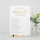 A custom bridal shower game to see which guest knows the bride best! Edit the questions to make this specific to the bride. This design features elegant script lettering, faux gold foil and a pink floral arrangement at the bottom of the page. Cards reverse to a beautiful pattern of the same watercolor flowers. View the collection linked on this page for matching bridal shower stationery or visit our store for more bridal shower games.
