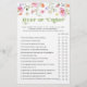 Floral wildflower over or under bridal shower game