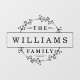 Floral Wreath Custom Family Name Black Script Template Wall Decals features a floral wreath with your personalized family name in elegant black script. Personalize by editing the text in the text box provided. Designed by ©Evco Studio www.zazzle.com/store/evcostudio