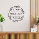 Floral Wreath Custom Family Name Black Script Wall Decal