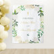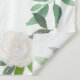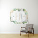 A striking First Holy Communion "God Bless" tapestry backdrop designed for siblings sharing their celebration, featuring two names in gold calligraphy framed by a watercolor wreath of white and cream roses with lush greenery and gold leaf accents. A gold cross tops the design. Perfect as a photo backdrop or wall display at the communion party. All text is fully customizable for your children's names.
