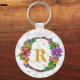 Floral Wreath Initial Letter Monogram Name Marble Keychain