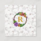 Floral Wreath Initial Letter Monogram Name Marble Square Business Card