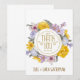Lovely yellow, blue and purple floral wreath with golden "Thank You" in handwritten golden font. Personalize with the couple's name or other special message.