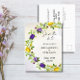 Announce your special day with charm and elegance using the Floral Wreath Save the Date Postcard featuring delicate yellow and violet flowers. This beautifully designed postcard showcases a hand-painted floral wreath that gracefully frames your names and wedding date, blending soft romance with vibrant, cheerful tones. The yellow blooms symbolize joy and new beginnings, while the violet flowers add a touch of grace and serenity—together creating a harmonious palette that reflects the beauty of your love story. Printed on high-quality cardstock with space on the back for mailing details or a personal message, it's a perfect way to share your excitement while setting a naturally elegant tone for your wedding celebration.
