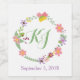 Wedding themed wine label done in white, with graphics of a colorful floral wreath with the bride and groom's monogram inside. Personalize with your initials and wedding date for your wedding reception.