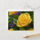 This charming floral post card features vibrant yellow roses with contrasting purple flowers lovingly nestled in greenery. The back of the postcard is blank for your personalized message.