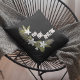 Floral design with green and white flowers and simple white lettering. Why complicate the obvious?