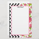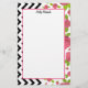 Stationery paper featuring a design consisting of pink roses and black zigzag.