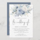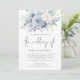 Florals 3 Photos QR Code Dusty Blue Wedding Invitation