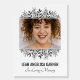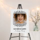 White funeral sign or memorial sign with your loved one's photo framed by florals and greenery, your loved one's name in a bold font with In Loving Memory beneath in a pretty script. A floral memorial service sign with a large photo. Floral In loving memory sign personalized with your loved one's photo and name.