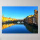 Image of Arno River with Ponte Vecchio in the center, which is one of the major landmarks and attractions of Florence, Italy.