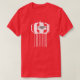 My 11 yo wore adult XL (5’7” 165#). The 8yo is small framed. She wore adult small and tied it in the back. Grandma wore adult large with long sleeve shirt underneath. Tall girl adult medium. Dark haired male adult large. Good quality dark Heather gray, Gildan brand shirt. -it was next up from basic choice and cost about $20 per shirt. Not too thick or thin. Washed and dried well, no major shrinkage. Not see-through. Can wear a bra under it fine. Screen print is just as shown and well done, front and back.