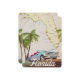 Beautiful illustrated map of the state of Florida and islands in the region in a beautiful vintage style featuring a retro 1950s car.