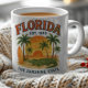 Show off your Florida pride with this vintage-style Sunshine State mug. Featuring an alligator resting by palm trees, a surfboard, and a bold orange sunset, this design celebrates Florida’s natural beauty and tropical vibe. With “Florida Est. 1845” proudly displayed, it’s the perfect souvenir or gift for beach lovers, travelers, and locals who want to enjoy a taste of paradise with their morning coffee.